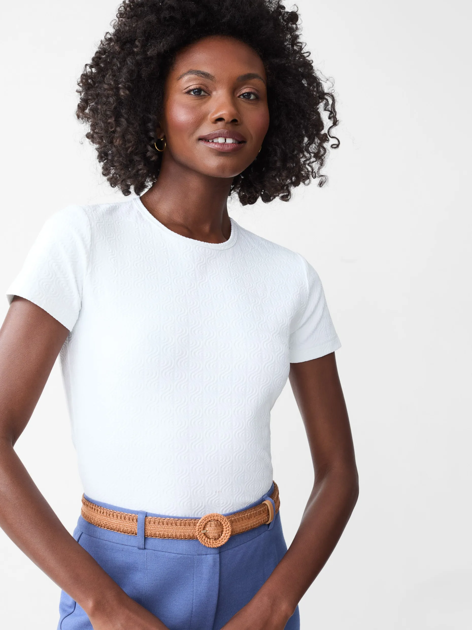 The perfect basic t-shirt for all your needs. Crafted of wrinkle shy Catalina Cloth™, this classic top with a playful jacquard motif just might become your (second) favorite tee.