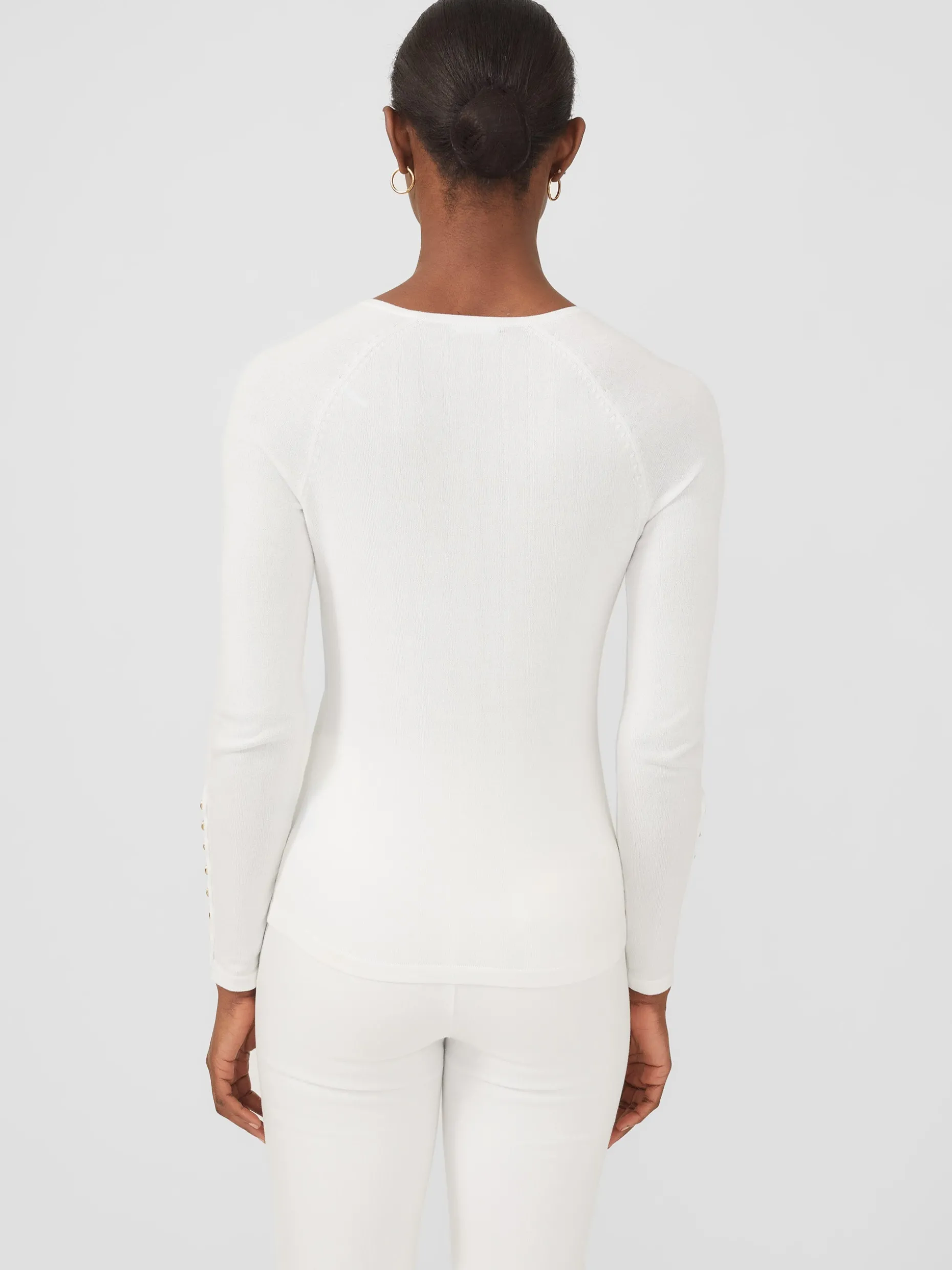 As easy as a tee, our raglan sleeve sweater comes in season spanning stretch knit with tiny golden buttons like built-in jewelry.