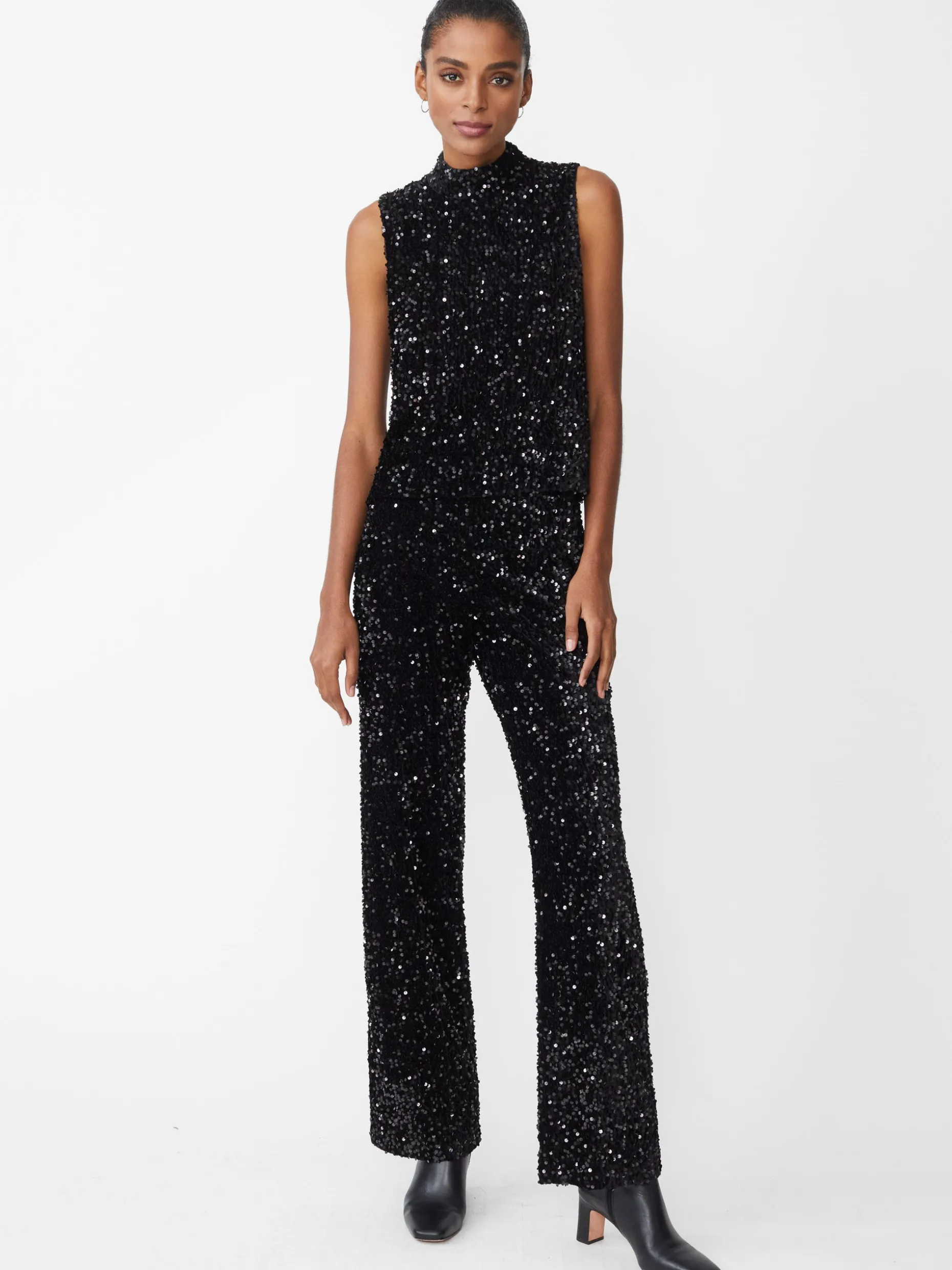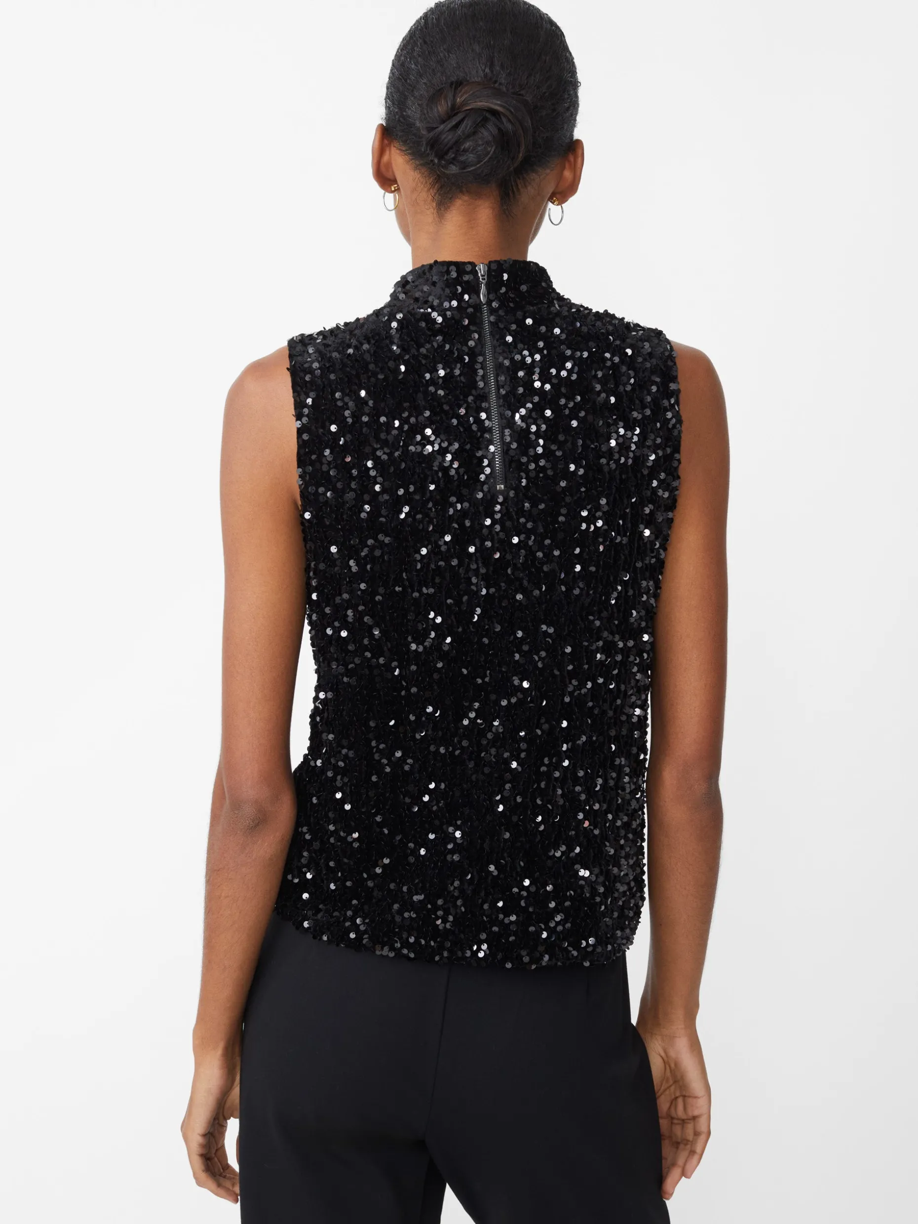 We took our best-selling Leeza top from past seasons, and refreshed it in a new, sleeveless design. Crafted in velvet with allover shimmering sequins, now in black and emerald green.