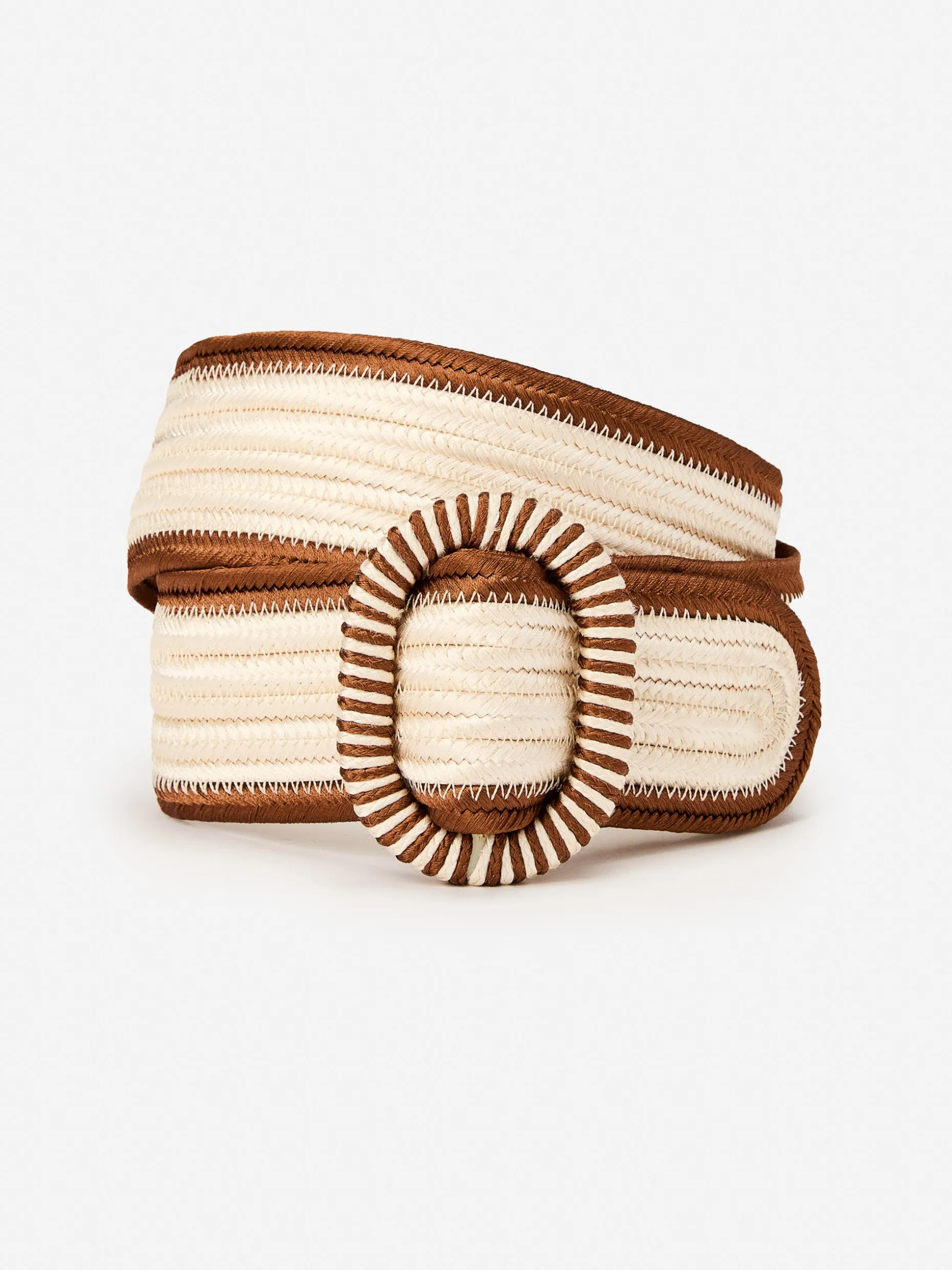 Take your look up a notch with our woven Ojai belt featuring an oval buckle and intricately webbed design.