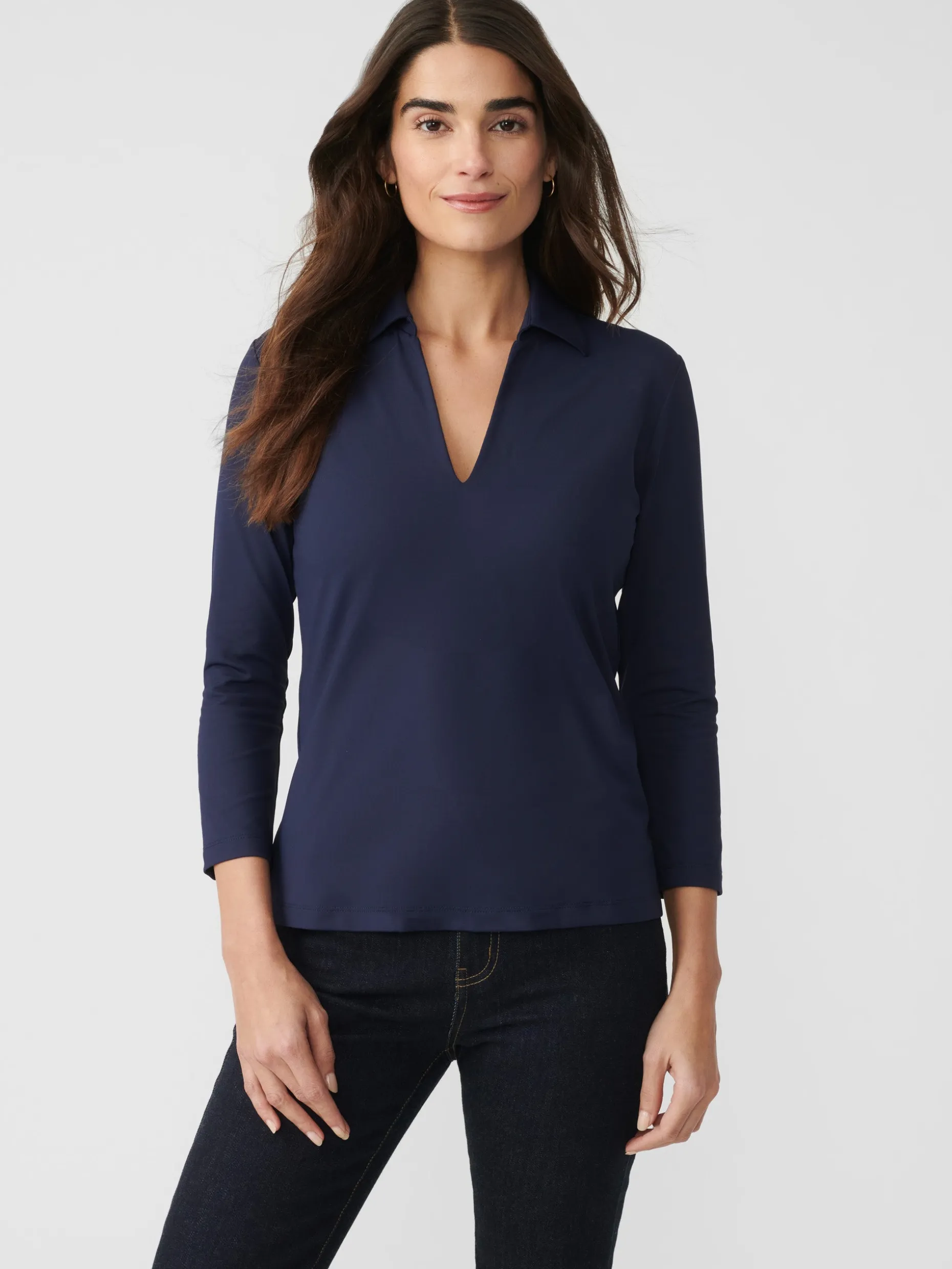 The perfect dose of fitted with a v-neck and 3/4 length sleeves, the Aida top is crafted in our signature Catalina Cloth. It’s wrinkle-free making it perfect for travel.