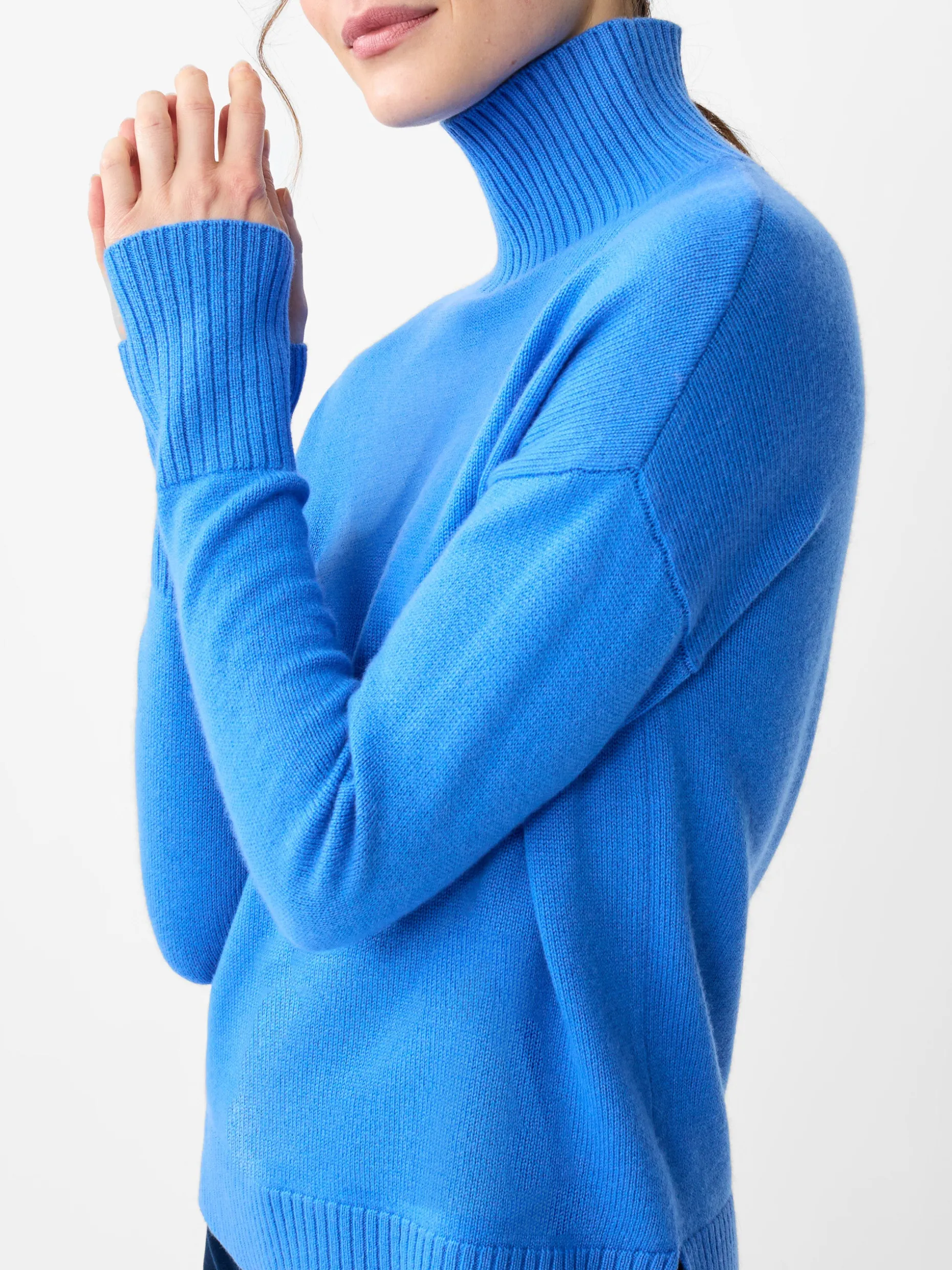 In soft cashmere and a rich range of hues, this is the sweater you’ll reach for all season. Dina has the same fit as our bestselling Clara, but with a longer rib-knit cuff and a slightly lower neck. Dress it up with a midi skirt and boots, or dress it down with faux-suede leggings.
