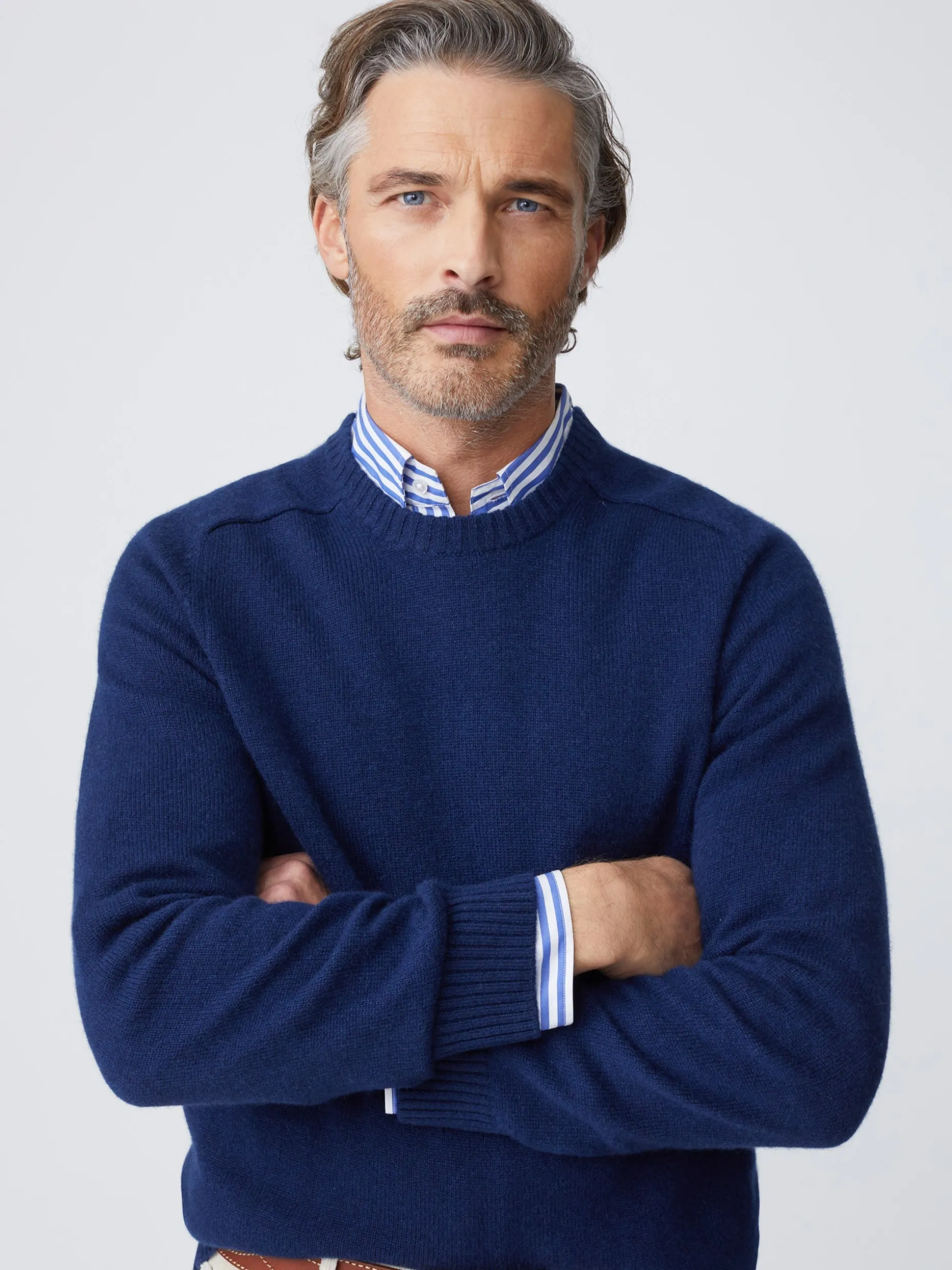 Made of robust winter cashmere, this luxurious crewneck features a Scottish-style saddle shoulder that aficionados will recognize as part of the British country look.