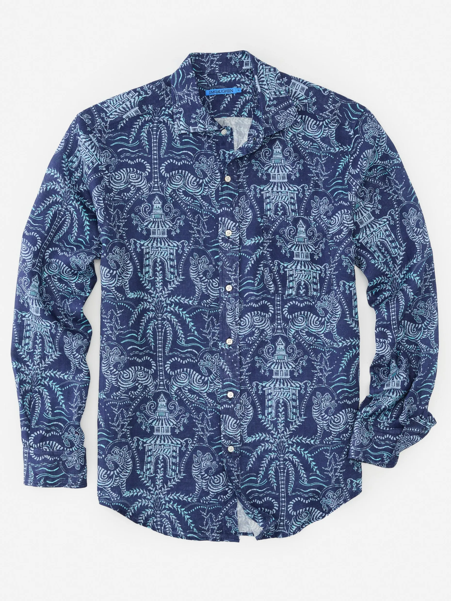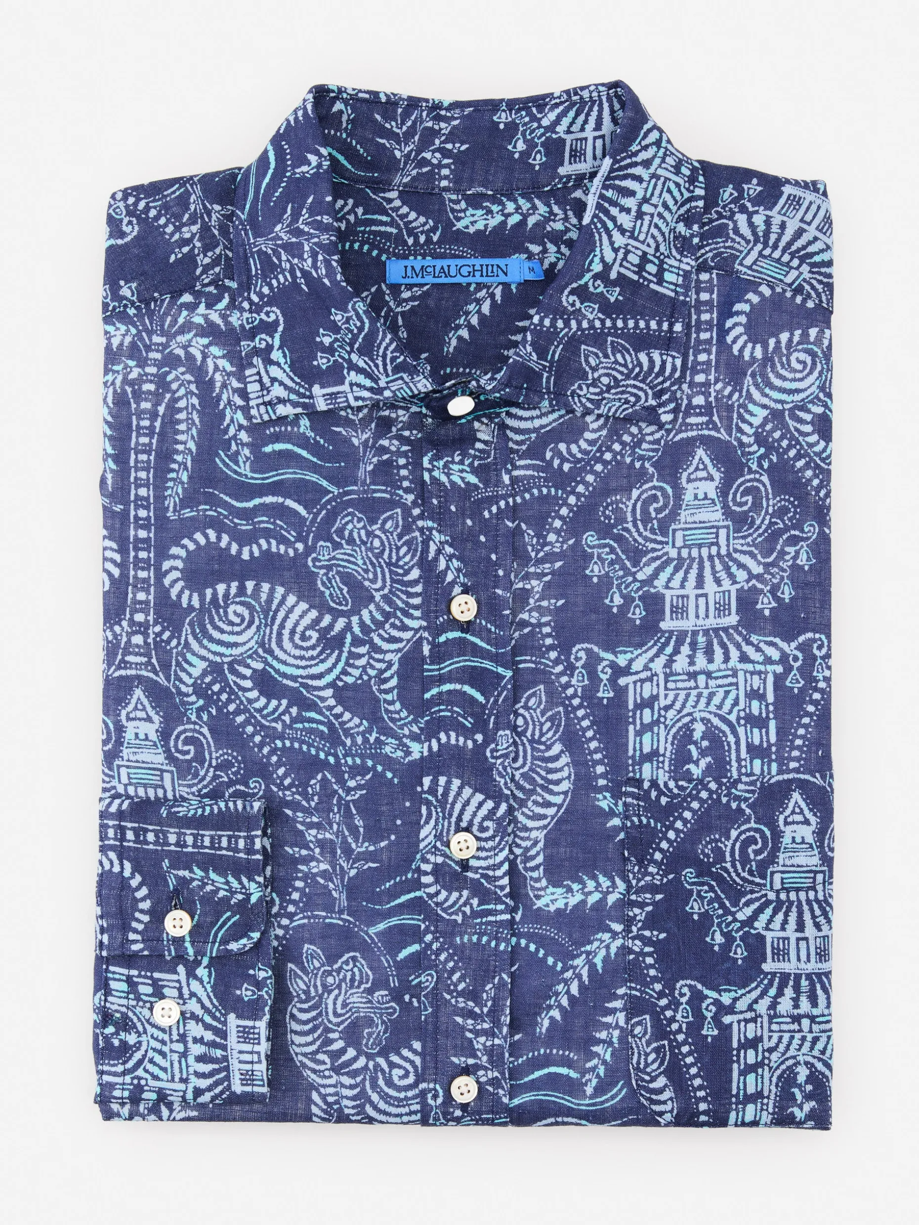 Gramercy Classic Fit Linen Shirt in Tiger Damask