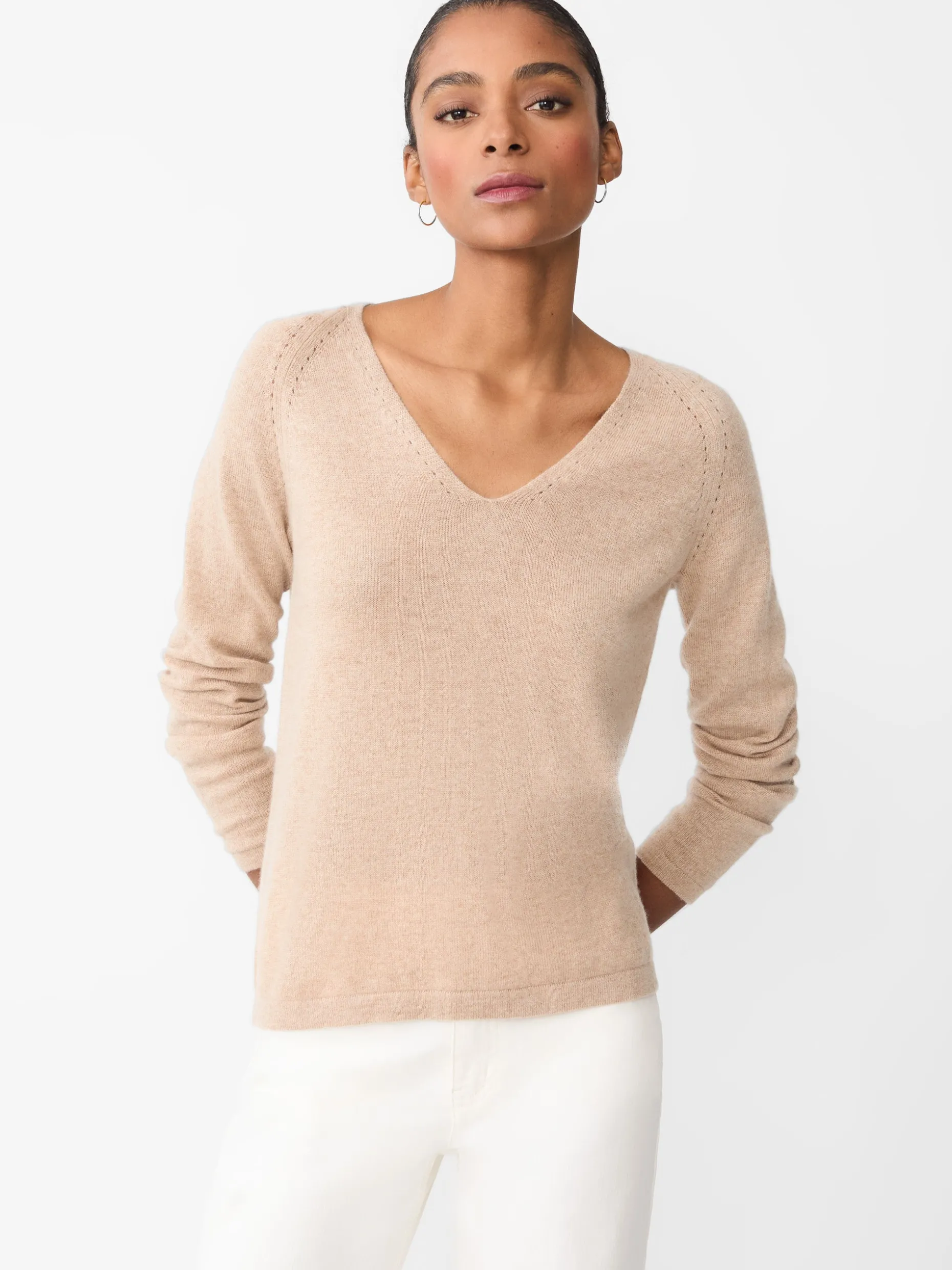 It’s the season of whisper weight cashmere, and our Hartley sweater is a buttery daydream. Crafted in 100% cashmere with a v-neck silhouette and delicate hemline detailing, it’s our favorite addition to our fall wardrobe.