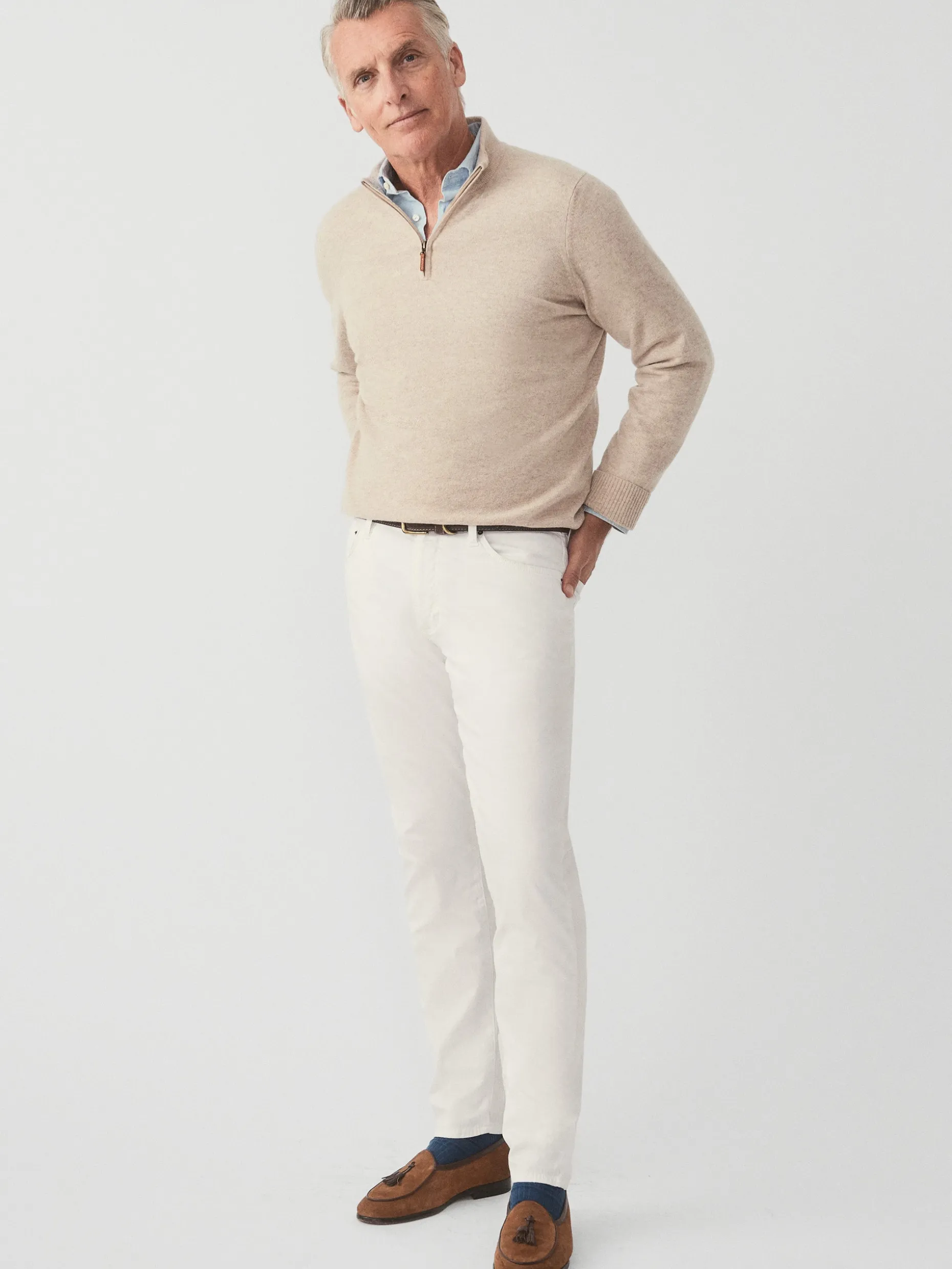 Seasonal, lightweight cashmere has arrived in the form of our essential zip neck sweater.