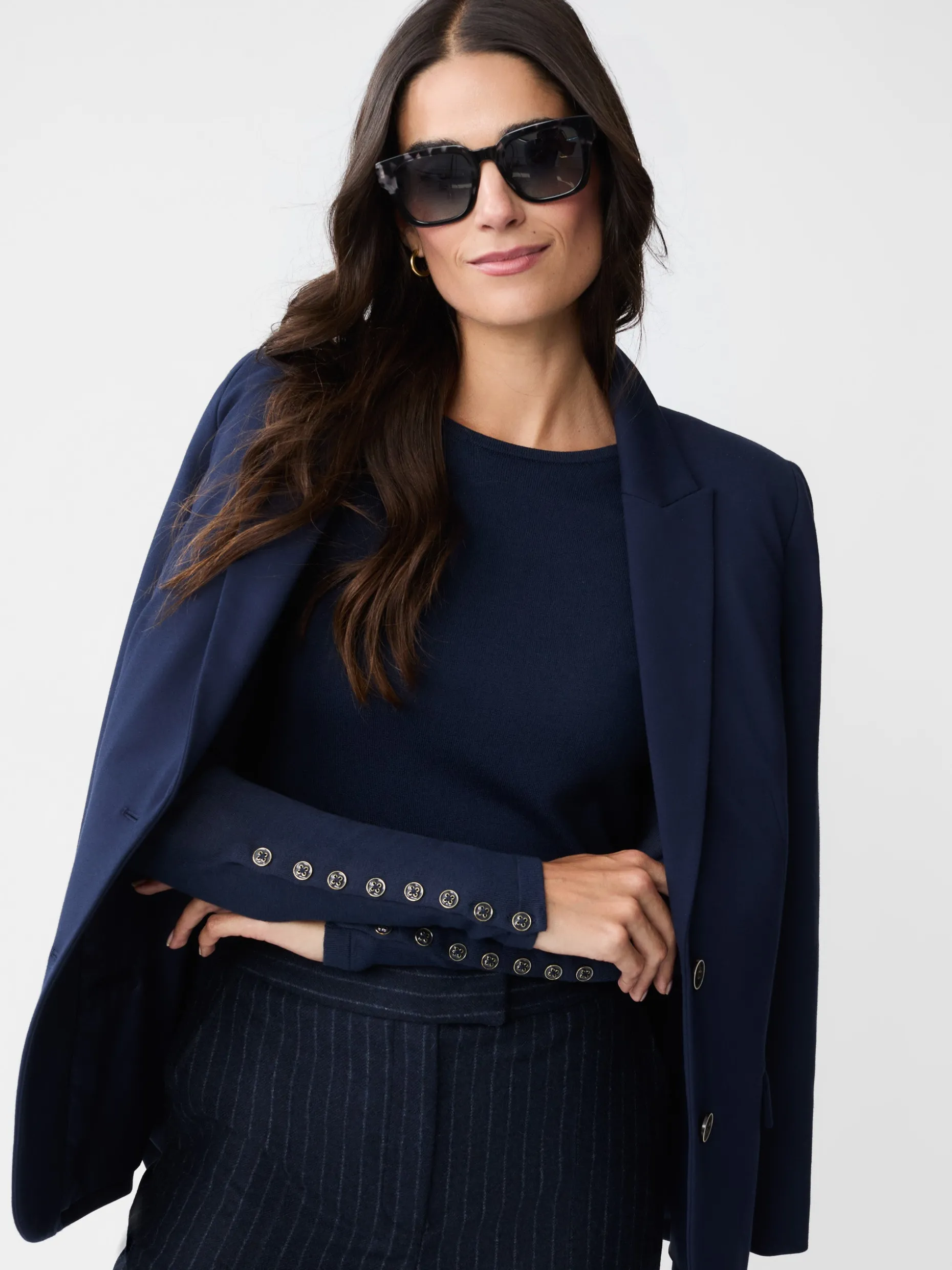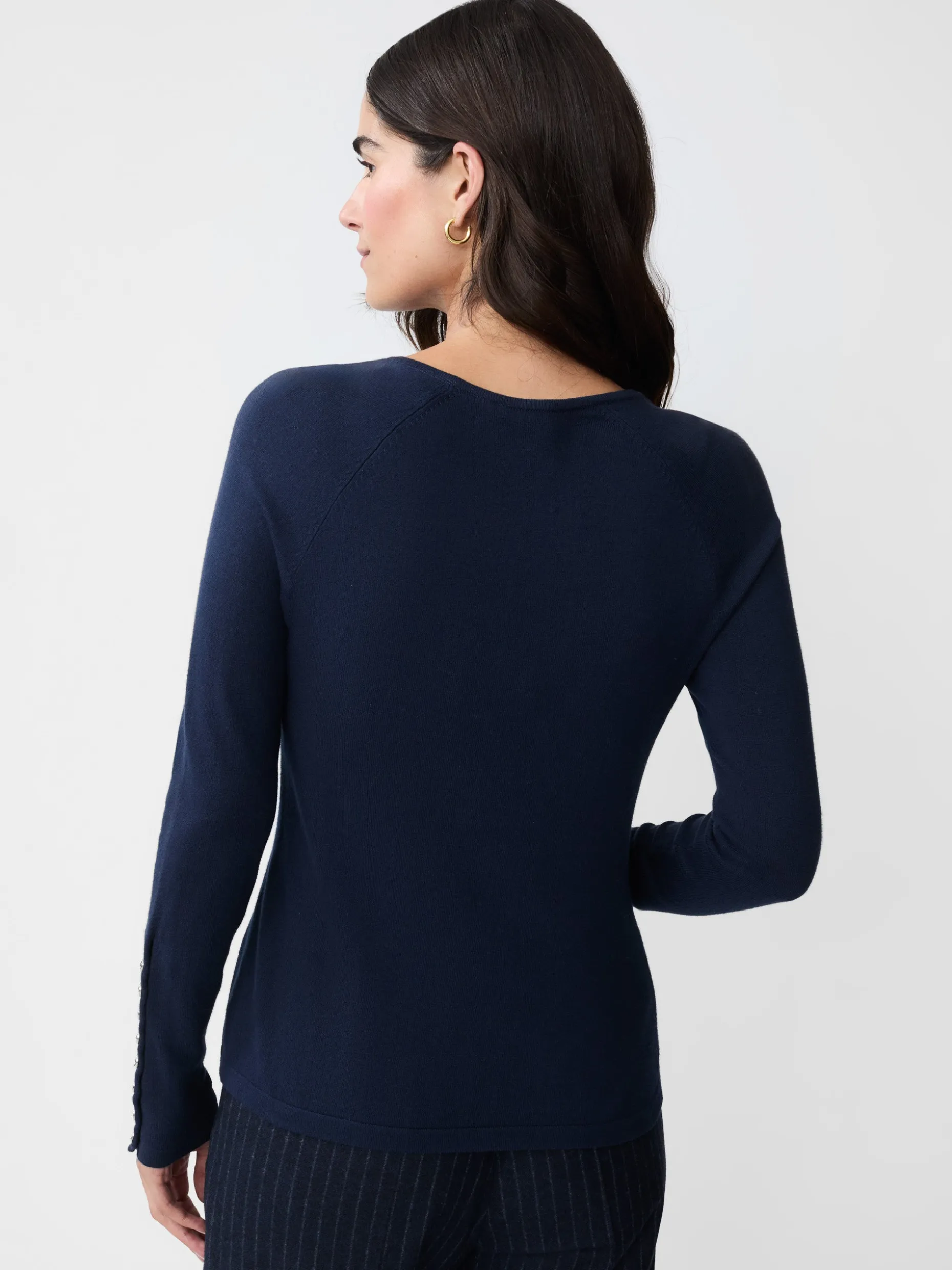 As easy as a tee, our raglan sleeve sweater comes in season spanning stretch knit with tiny golden buttons like built-in jewelry.