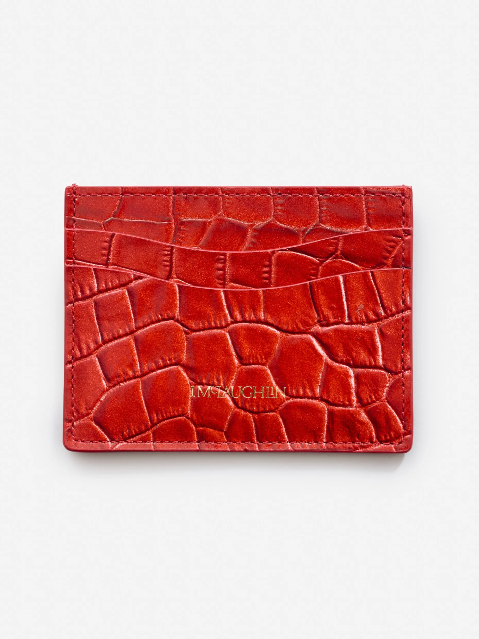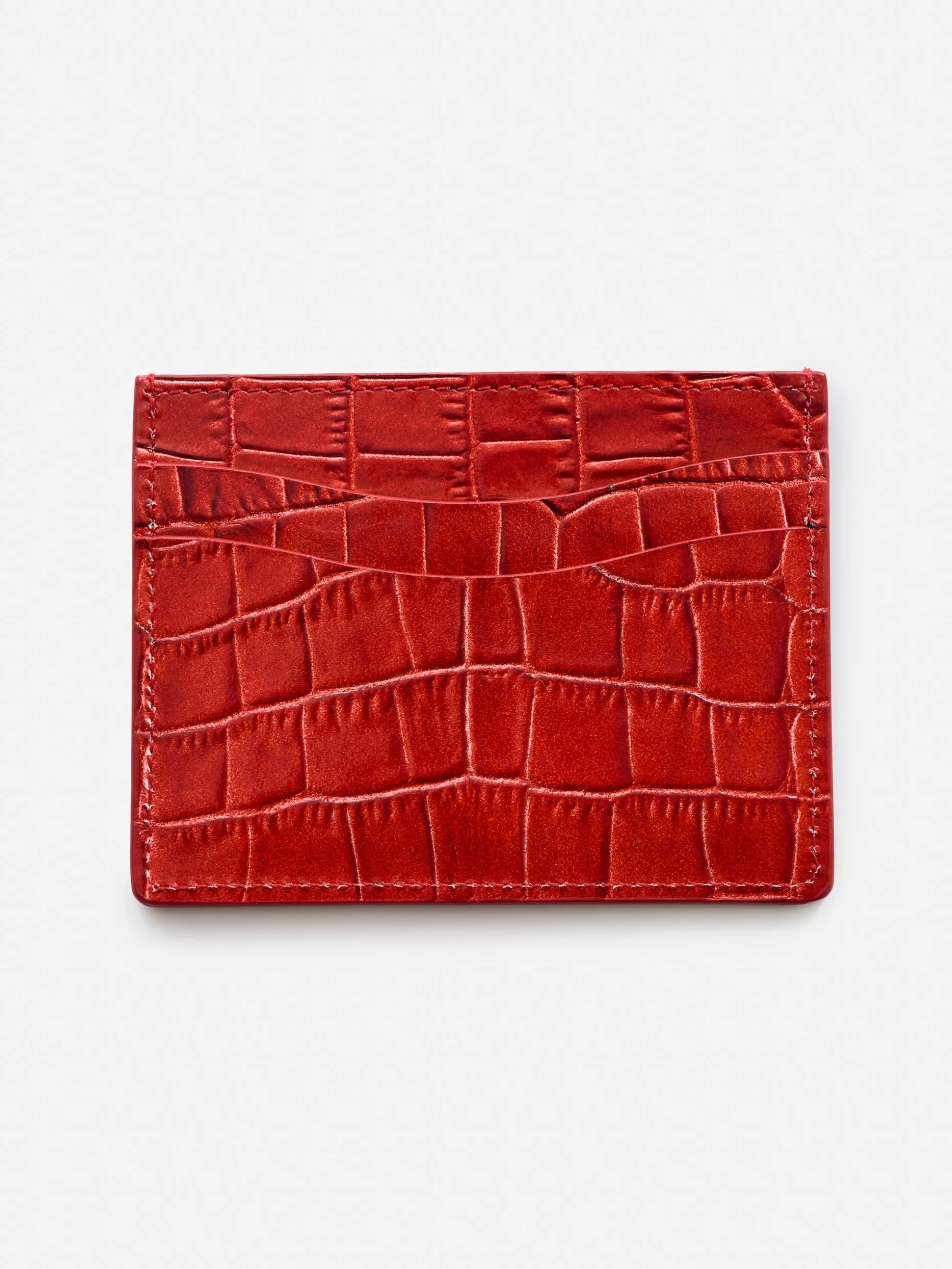 A traditional leather card case finished with crocodile embossing. Featuring a low profile and enough slots to carry everything you need.
