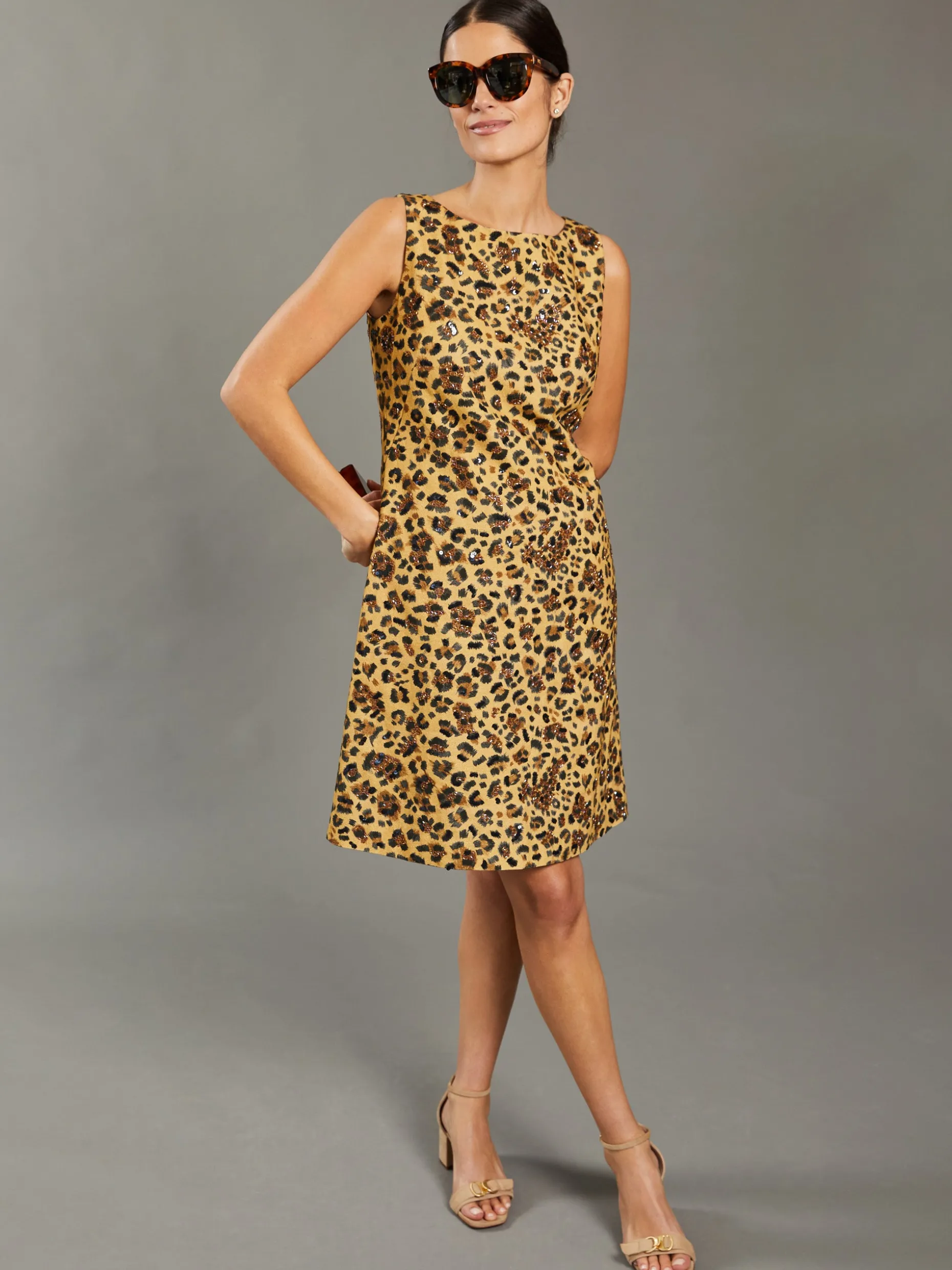 A fresh spin on forever-chic leopard print. From our limited-edition RSVP Collection with designer Steven Stolman, the Lizzi shift dress takes an interiors-inspired fabric and transforms it into eveningwear, hand-embroidered with sequins and bugle beads.