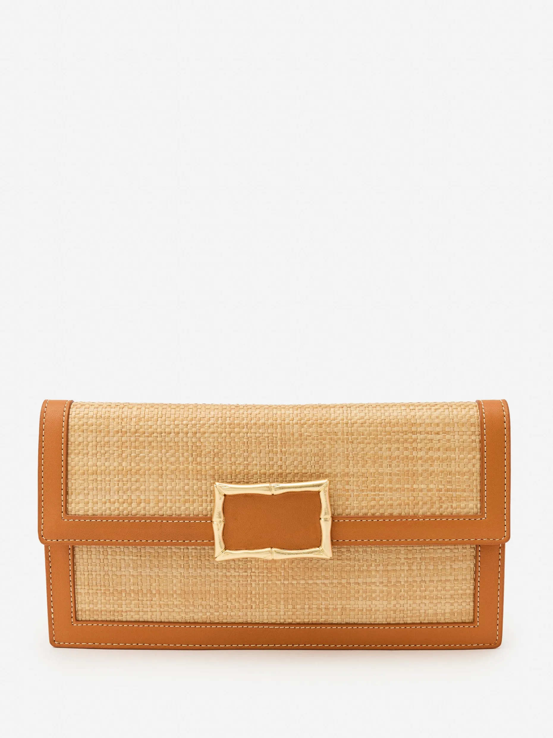Carry your essentials in our Marley grasscloth clutch, trimmed in leather and finished and with our signature bamboo-style buckle.