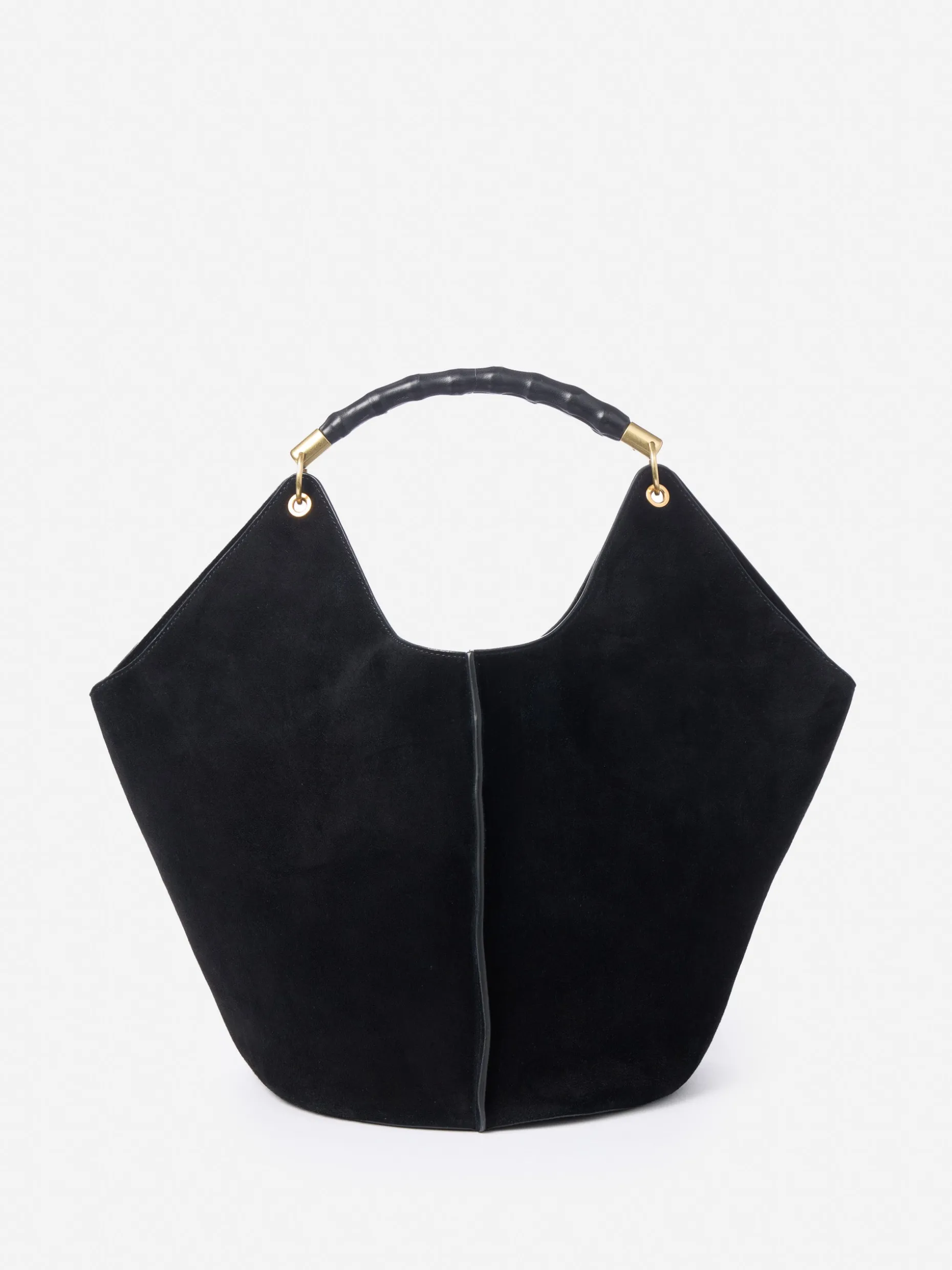 It’s no secret we love a top-handle tote, and this one in supple suede with our signature leather-wrapped, bamboo-style handle might just be our favorite one to date.