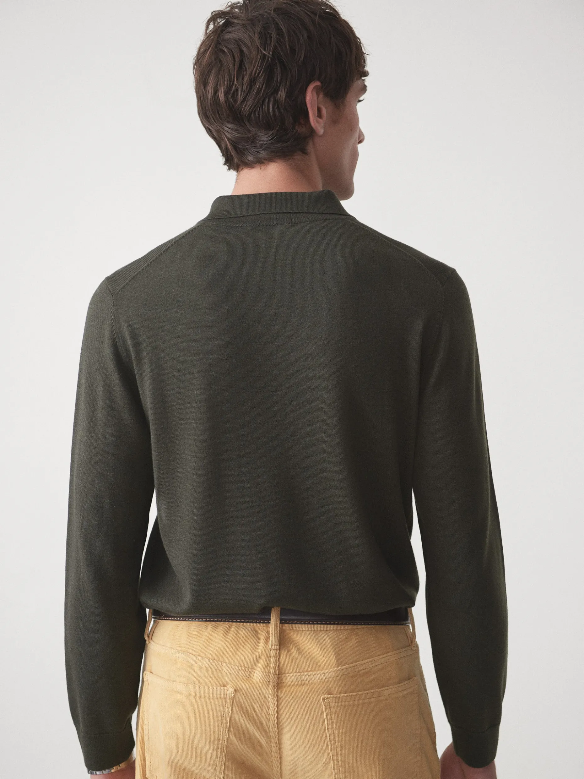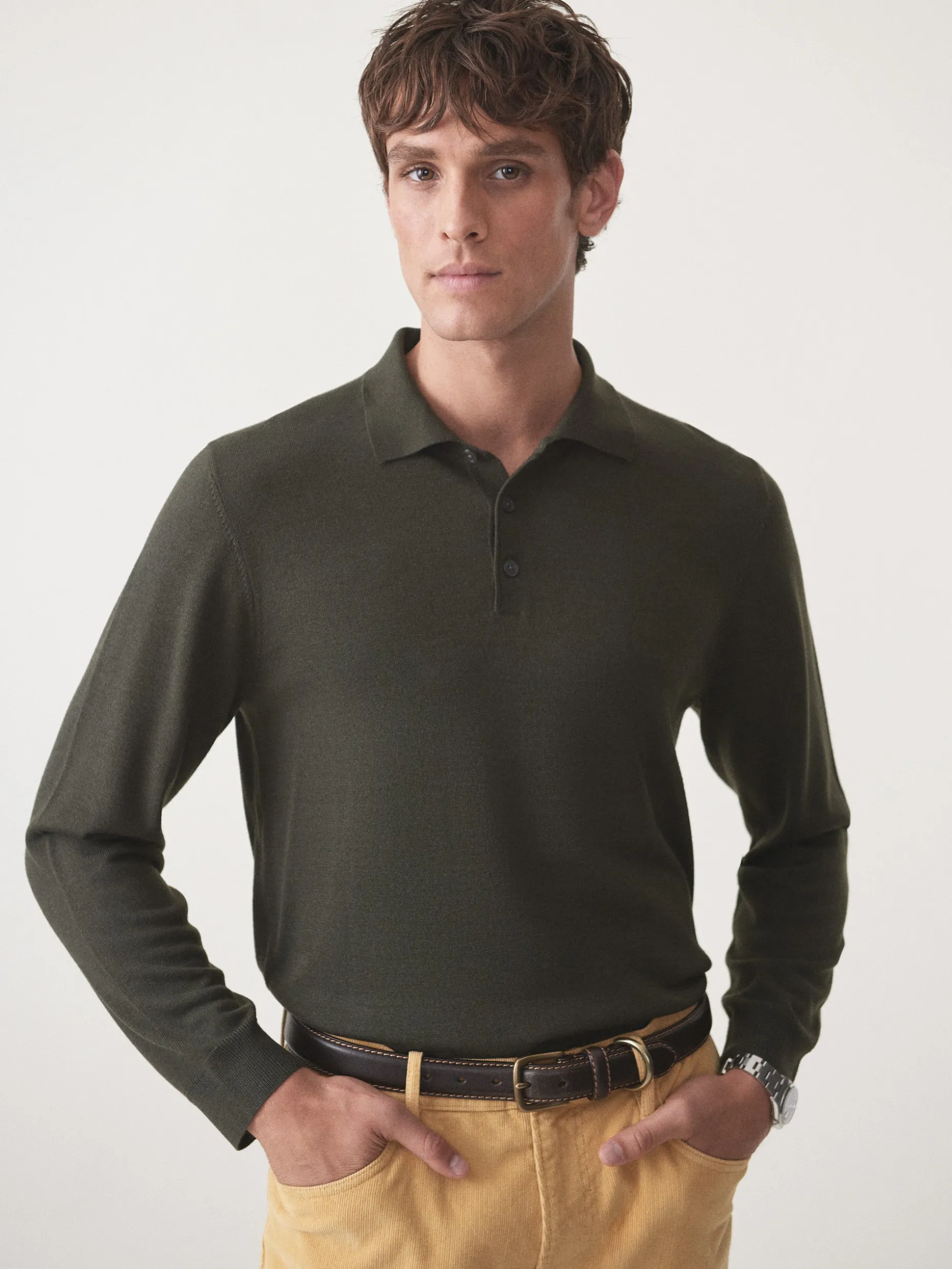A refined take on the polo shirt, the long sleeve Savona is made from a blend of 75% merino wool and 25% silk for a finer hand feel and a dressier look that pairs effortlessly with a sport jacket.