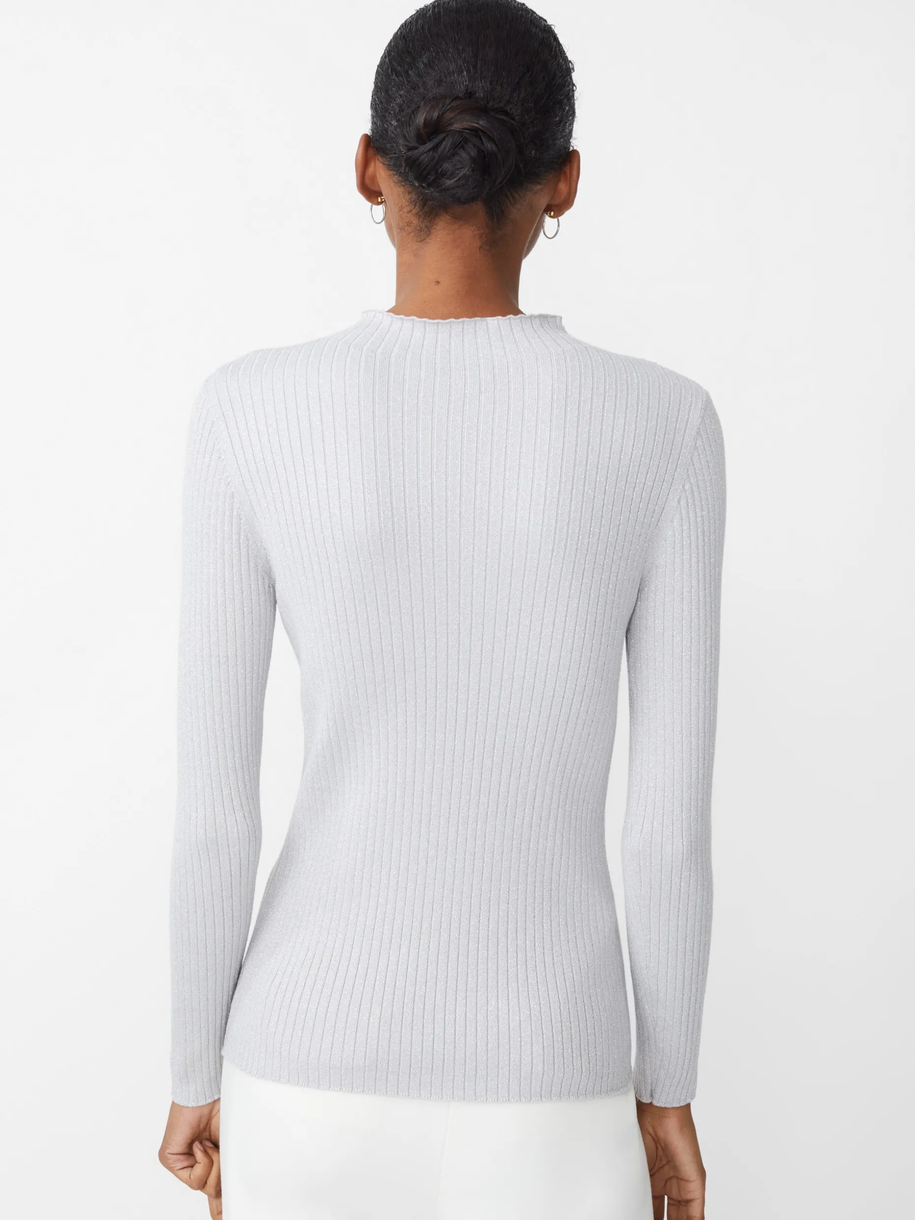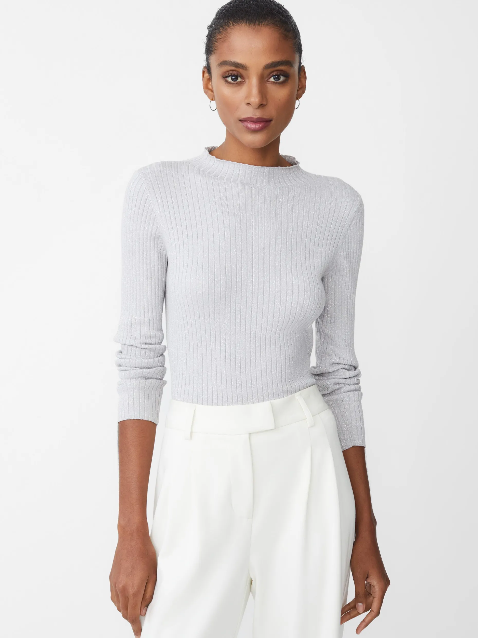 In a subtly shimmering ribbed knit, our Sylvana sweater is a versatile piece for the holidays and beyond. It pairs equally well with casual denim or a party-ready skirt.