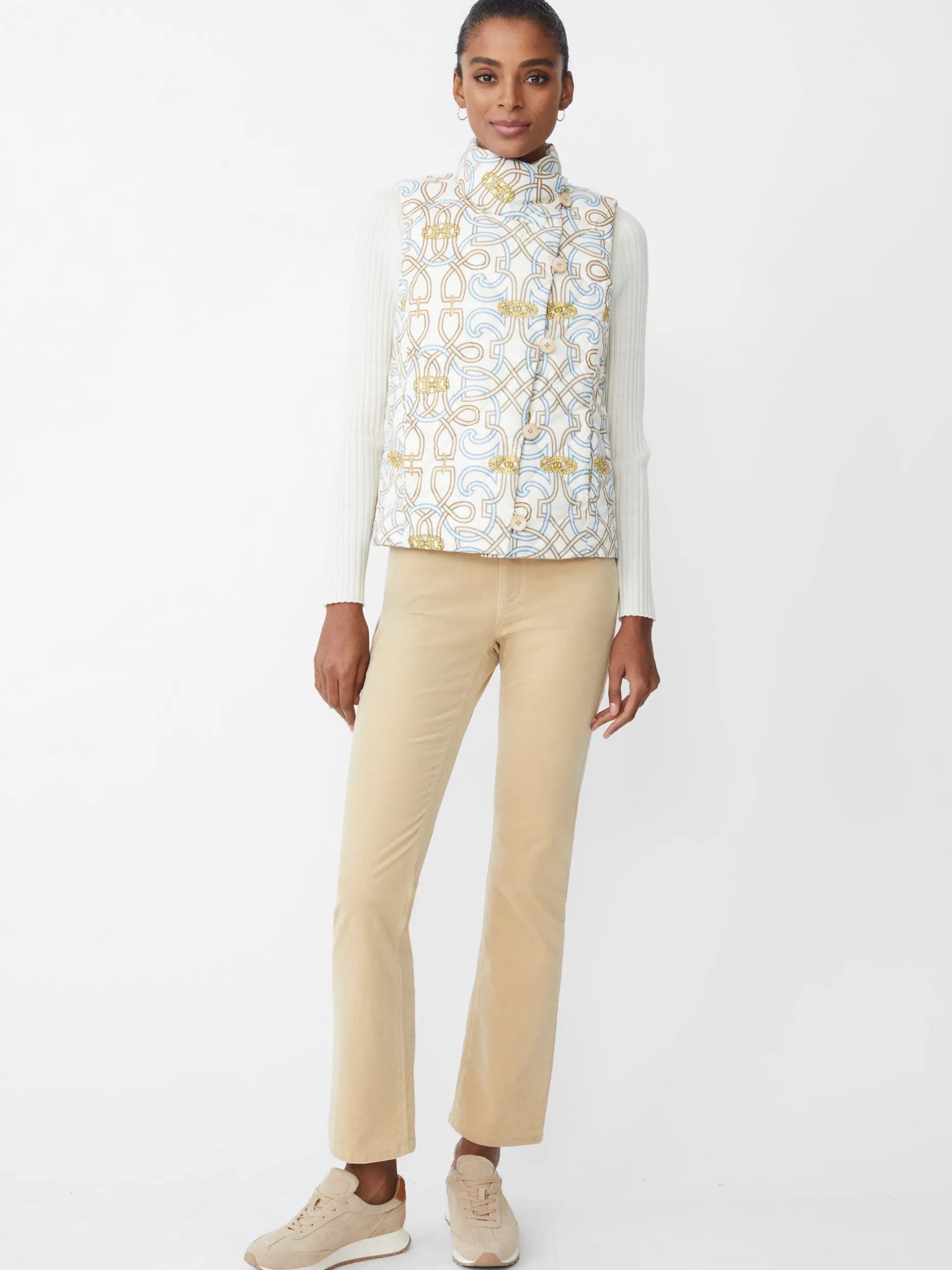 Meet: The Vivian quilted vest, a modern and infinitely versatile twist on our best-selling Vivian jacket. Layer up in unexpected elegance with off-center tortoise buttons and a neckline that sits just above the collarbone.